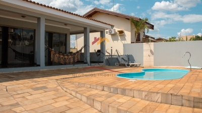 Casa Térrea com 300m² de terreno e 187m² de construção - Com 3 Dormitórios sendo todos Suítes e 1 Suíte Master com Closet, todas com Ar Condicionado e Móveis planejados. Um escritório com móveis planejados também.